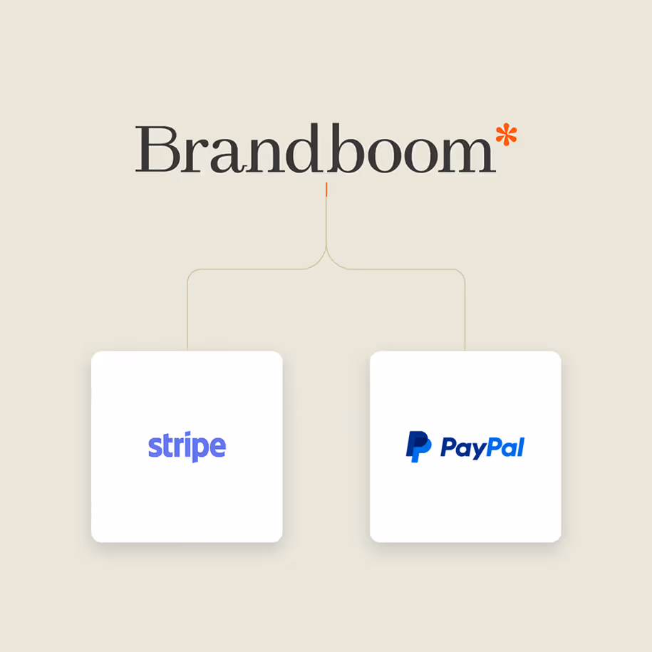 - Accept payments through Brandboom by integrating with Stripe or PayPal