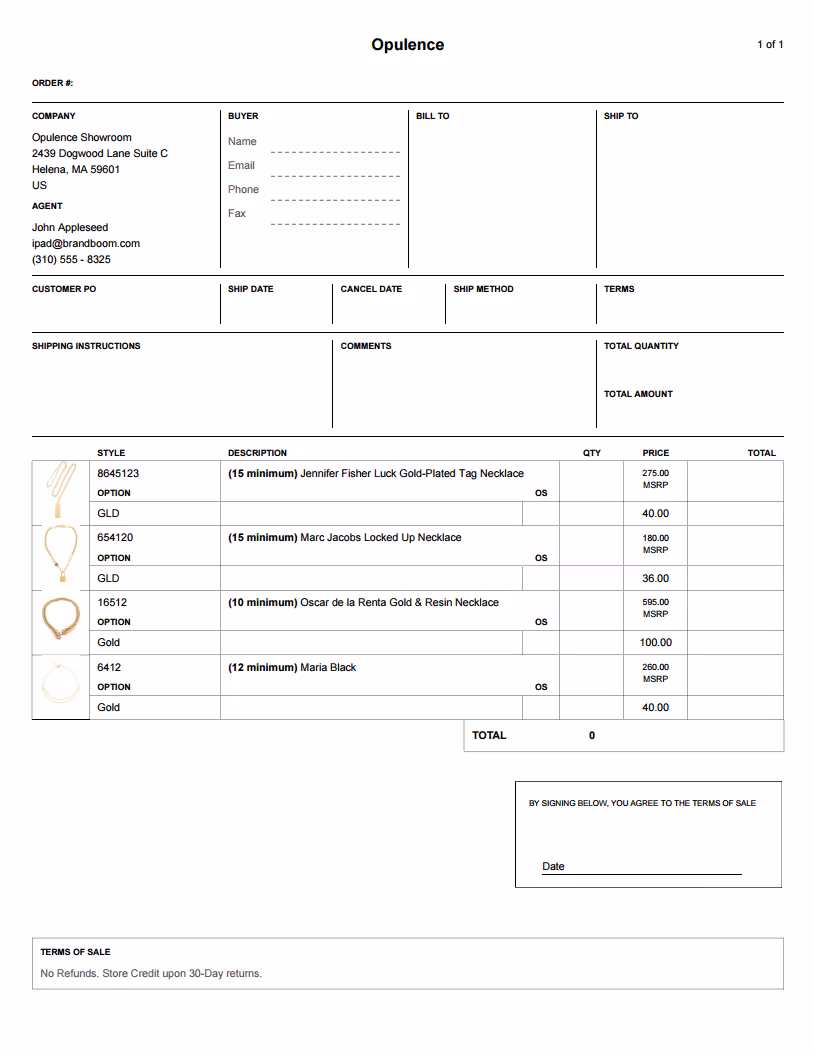 Skip the task of designing and creating an order form (on top of having to make line sheets). Collecting digital orders is quick and easy to process. Order forms are generated instantly when your buyer places an order, and any changes you make to an order are updated instantly.