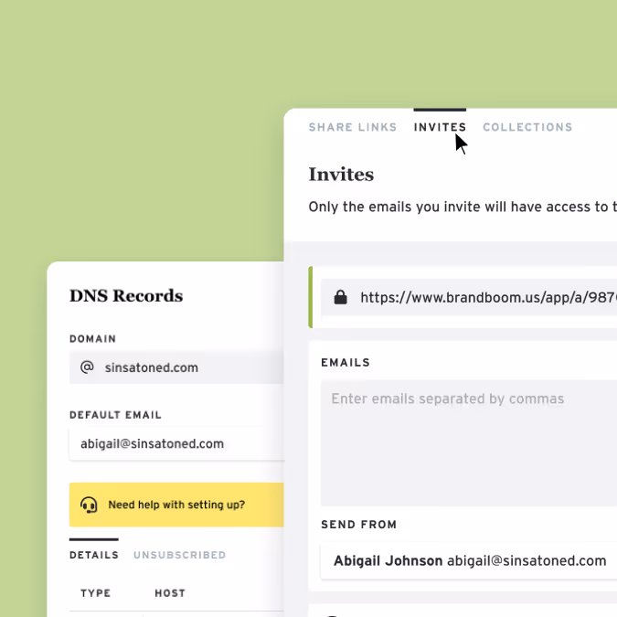 Trigger share link emails directly within Brandboom using your own whitelisted domain—no external mail client required. This update features bulk sending, sender verification, and automated unsubscribe management.